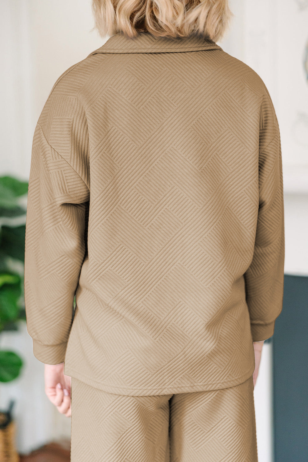 Stephanie Textured Collared Neck Top and Wide Leg Pants Set
